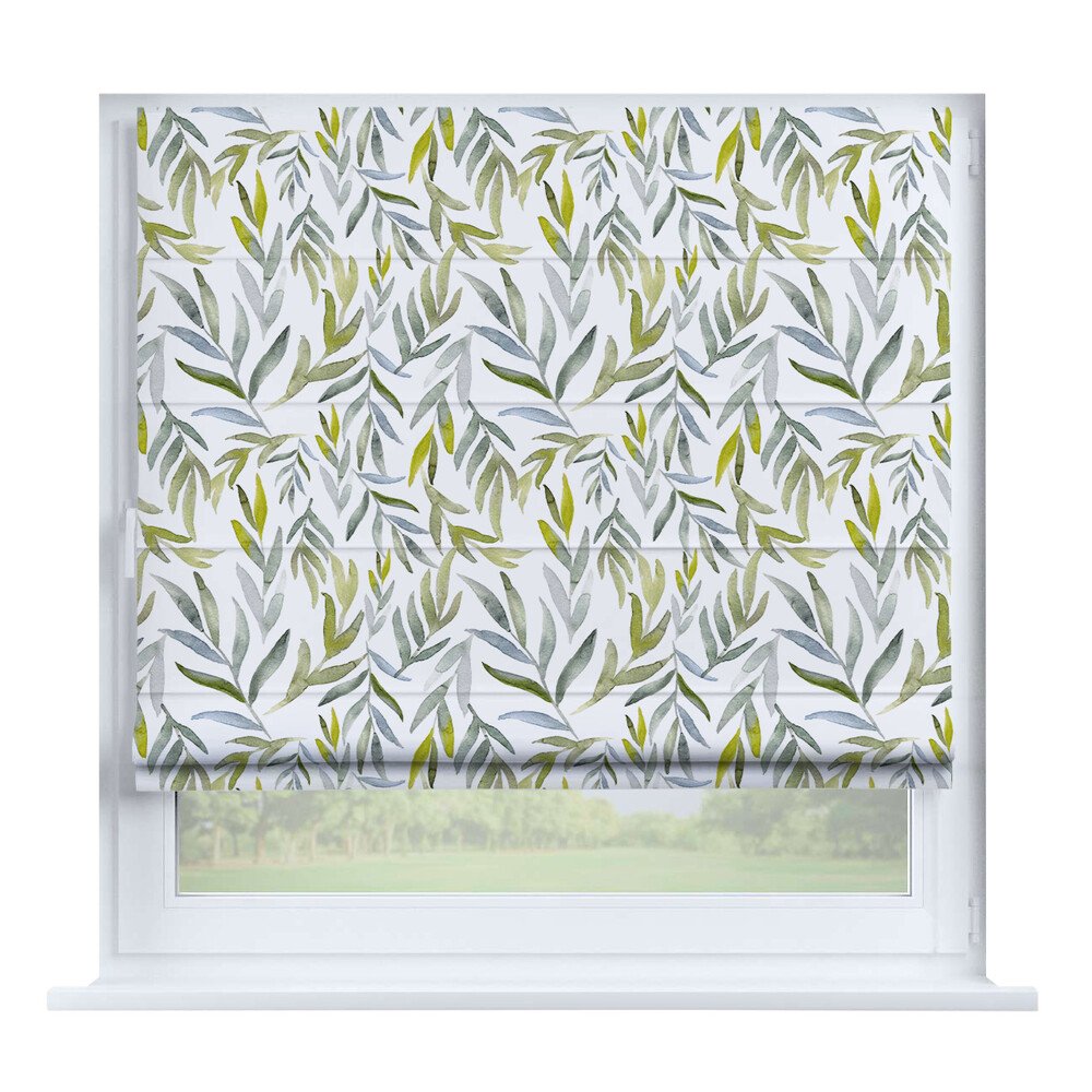 Римская штора для проёма лён димаут тёмно-зелёный, карниз верёвочный